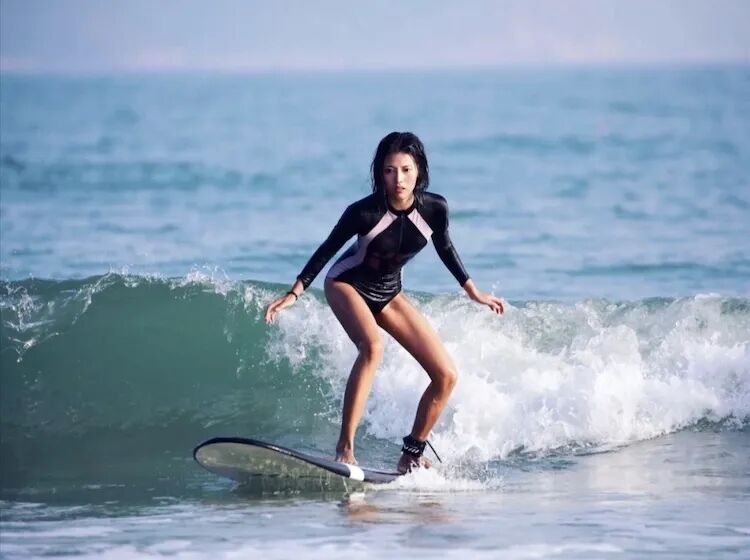 如果你对自己的技术还不是十分自信,可以选择上半身穿比基尼,下半身穿冲浪短裤,安全系数更高。