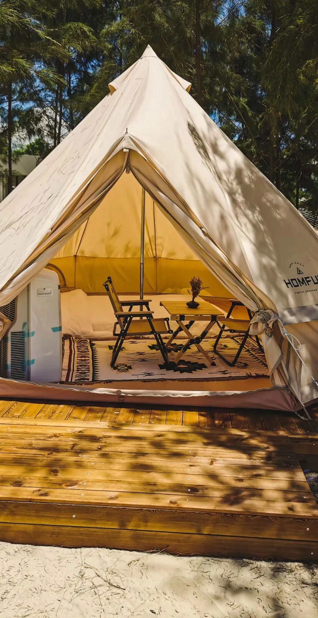 ★【轻奢露营】洁白的金字塔空调帐篷,享受轻柔的海浪以及浪漫的下午茶时光。