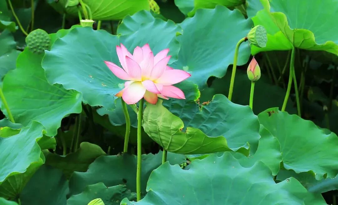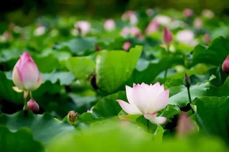 一阵风吹来,荷花丛中