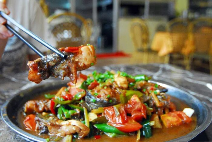 看过日落后回到吊脚楼,大家可以自费品尝壮寨特色的山珍美食。