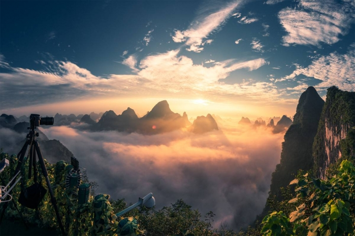 位于桂林阳朔的漓江西岸,这里的光影、云海、日出、彩霞吸引了无数的摄影家和摄影爱好者,桂林摄影家在此拍摄的作品曾获第10届国际影展铜奖。