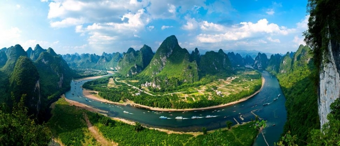 相公山位于漓江的西岸,登上山顶举目远眺,群峰排列有序,清澈的漓江蜿蜒流淌在群山怀抱中。