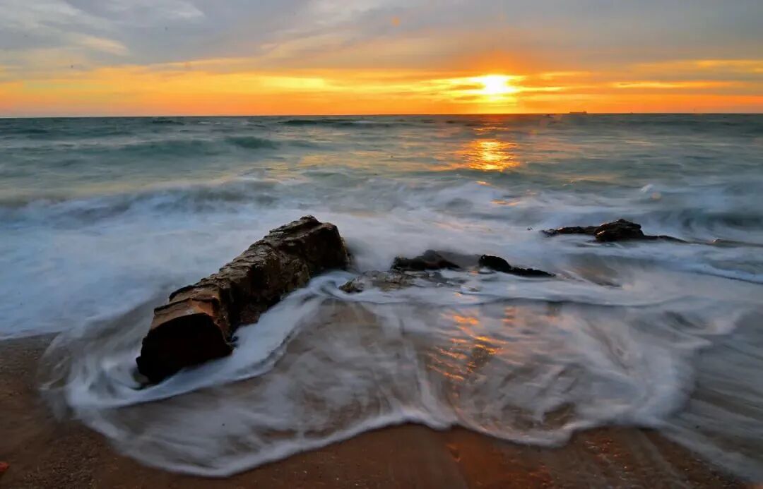 石螺口海滩也是最佳观日落的地方,在这里看一次日落,让你终生难忘。夕阳如丹,染红了云,映紫了海,涂粉了滩,犹如幻梦般的斑斓。