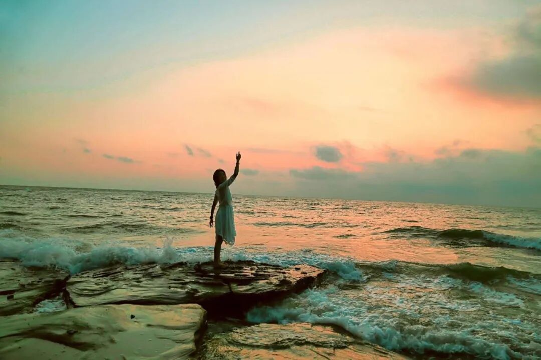 各种姿势各种背景:无论是一个人还是一群人,涠洲岛五彩滩、天主教堂、月亮湾、北岸沙滩、蓝桥都能拍出记忆深刻唯美无比的照片。