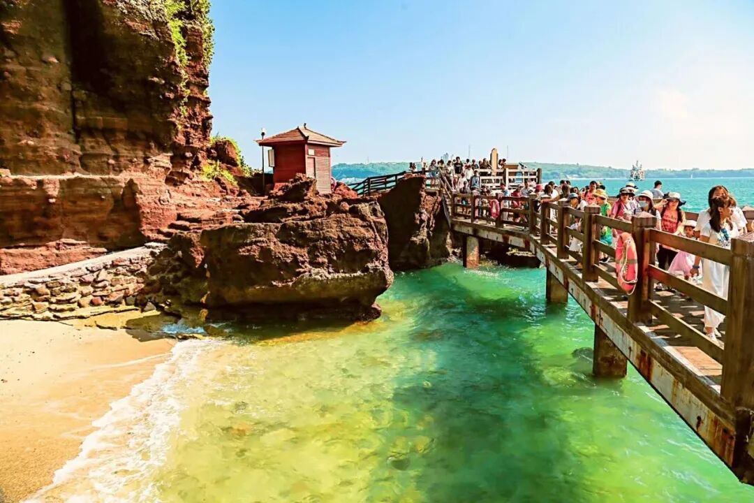 五彩滩退潮后,滩面还是比较湿滑,比较容易发生摔倒的情况,所以大家游玩的时候还是要注意安全,多加小心的。