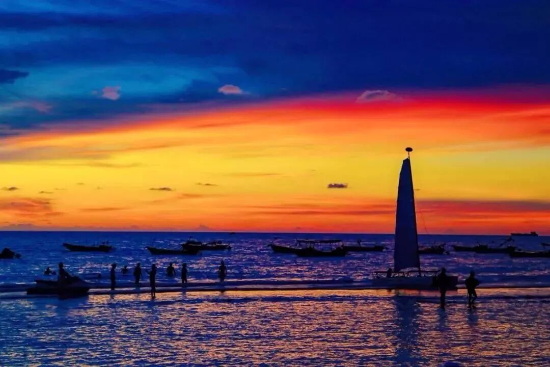 沙滩很美,海水清澈,五彩滩的日出更赞