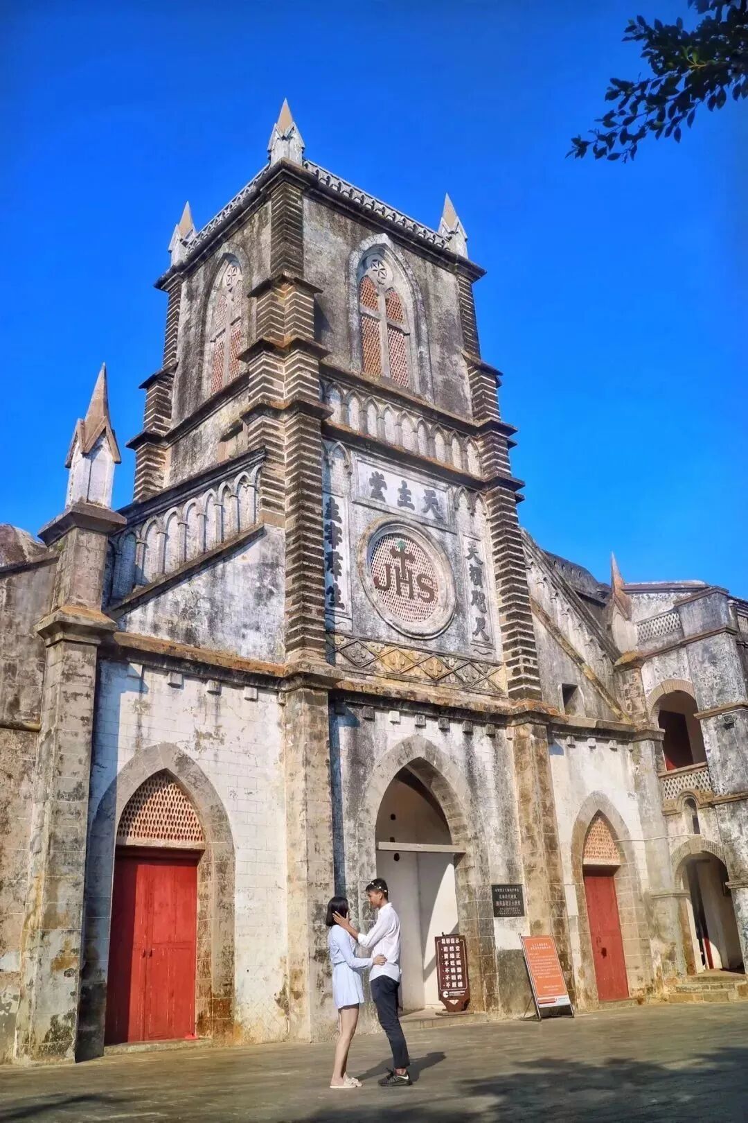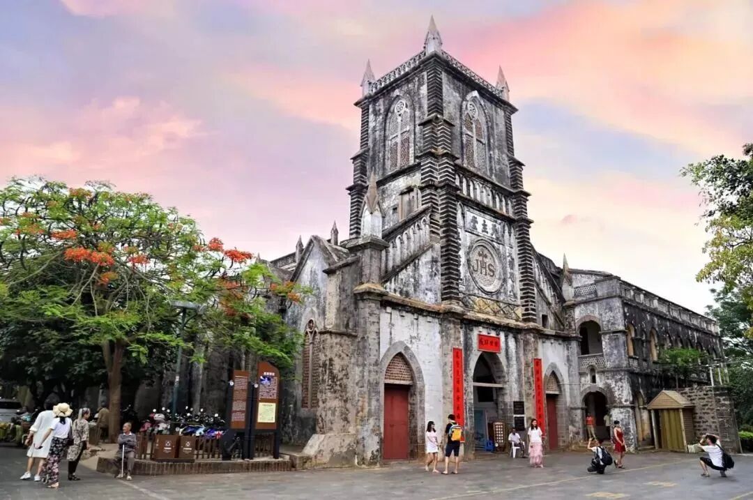 天主教堂位于涠洲岛东北部的盛塘村,由法国巴黎外方传教会于1853年修建。