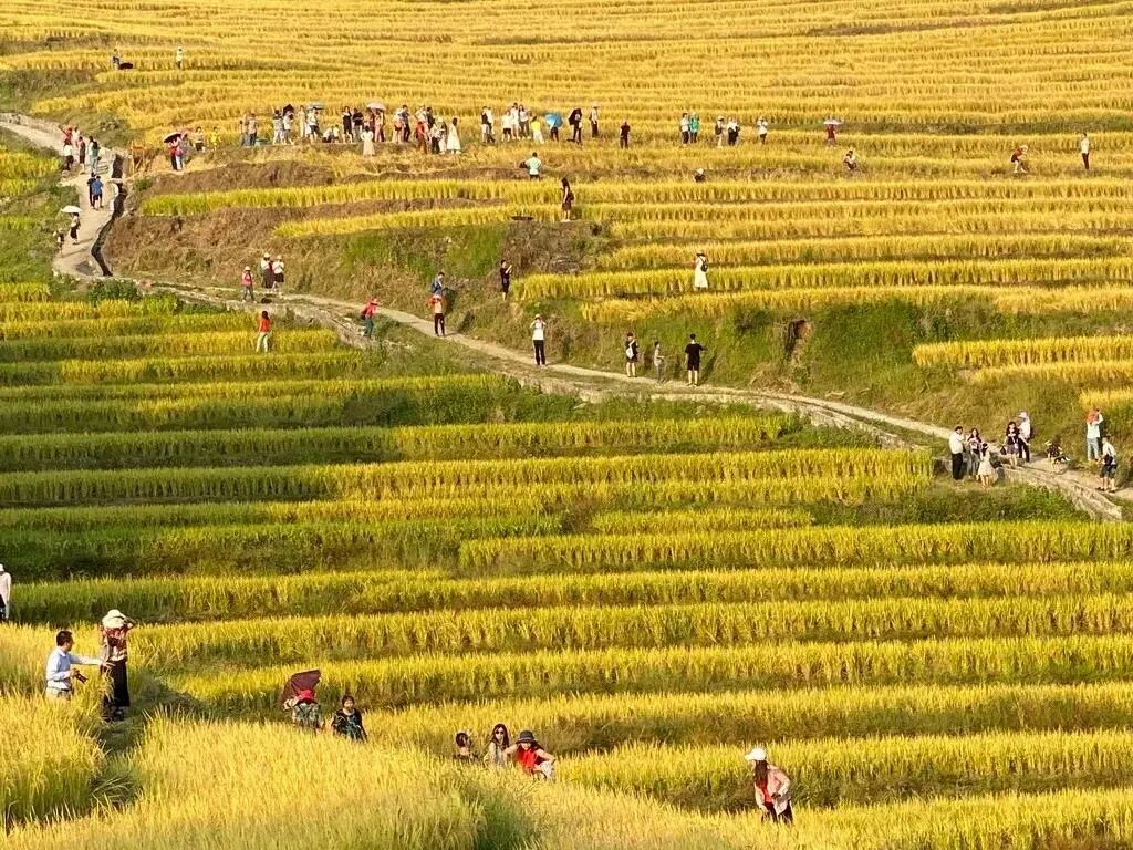 而到了今年中秋,梯田将迎来一片片金灿灿的稻田